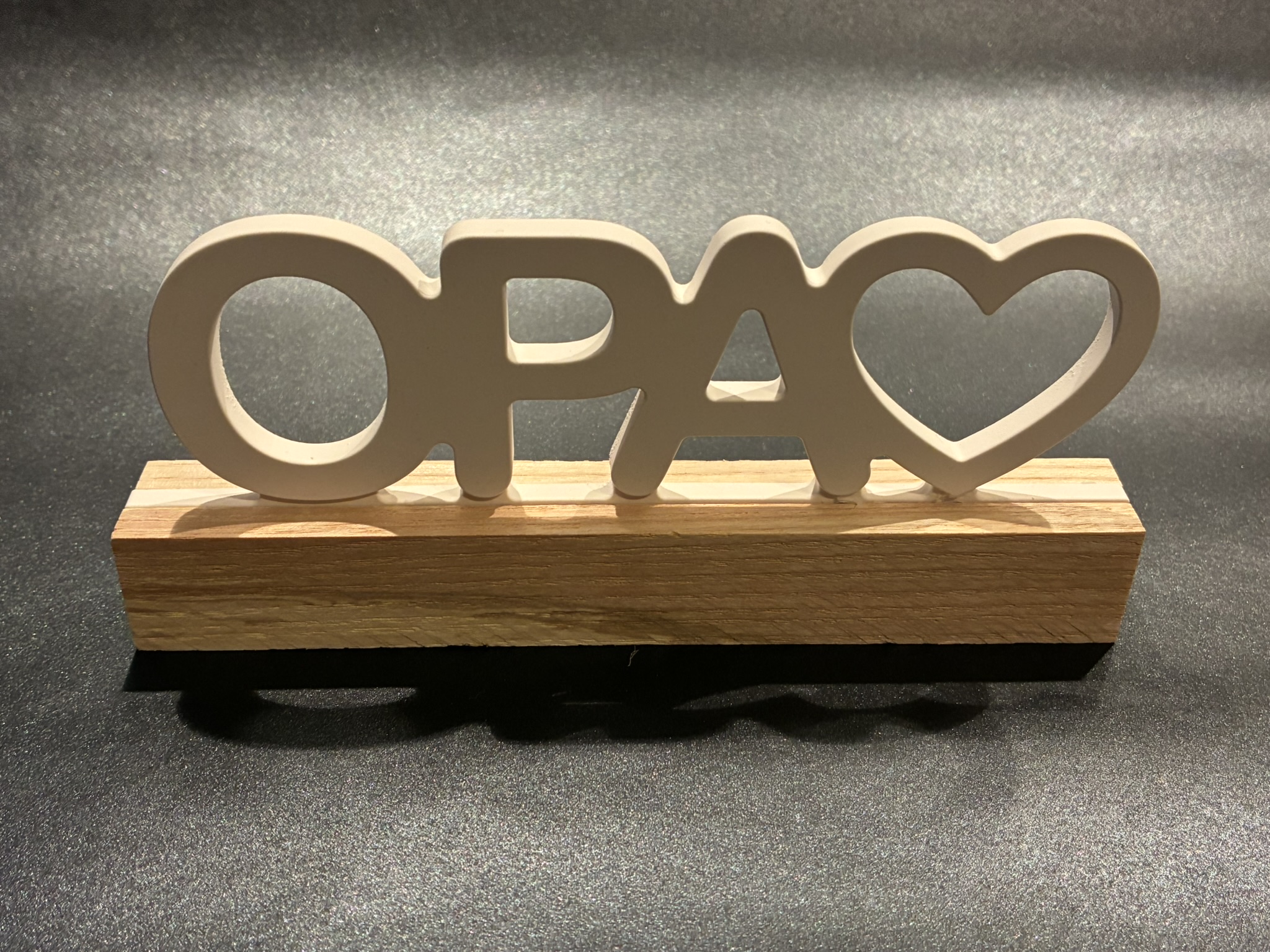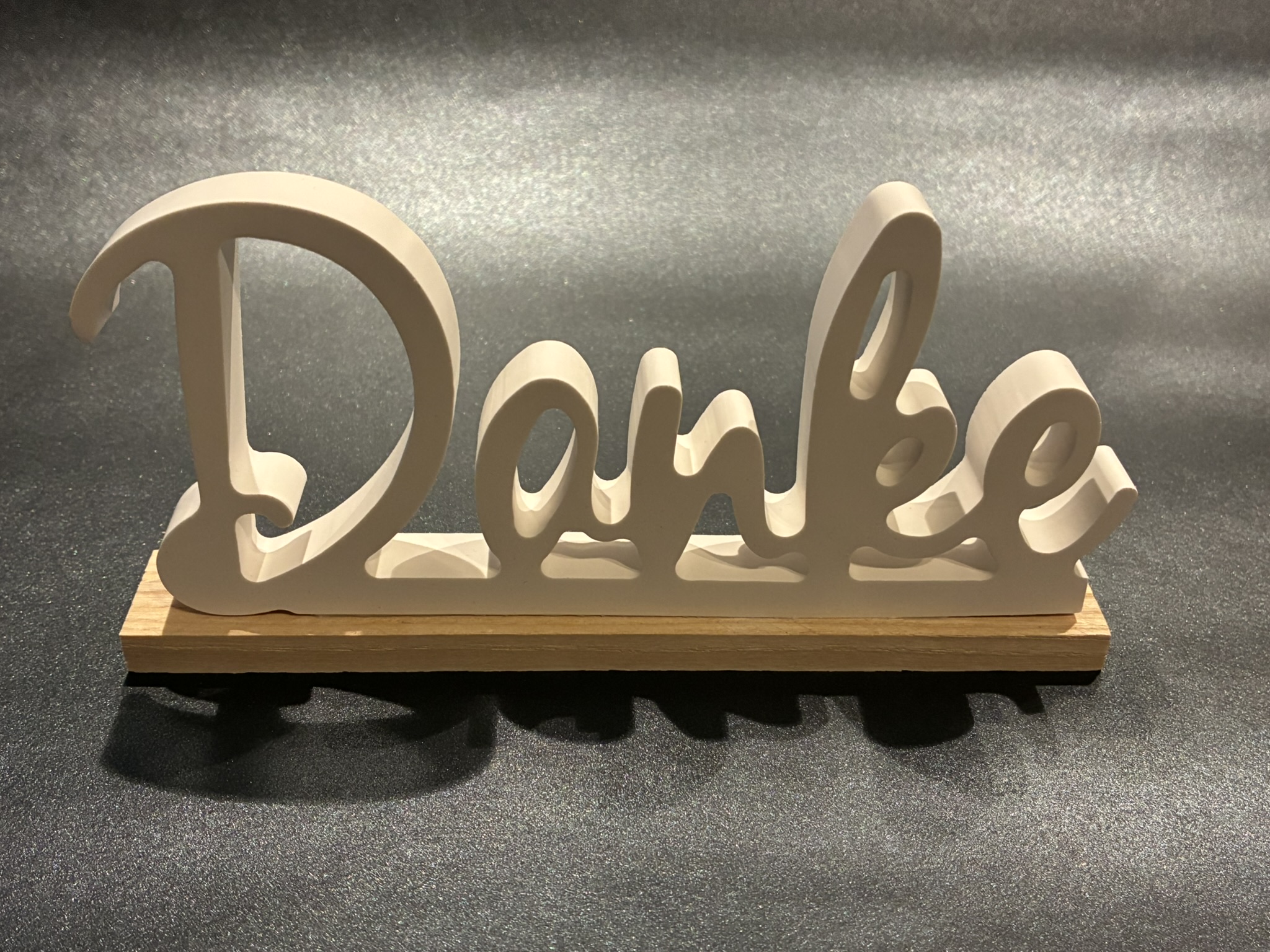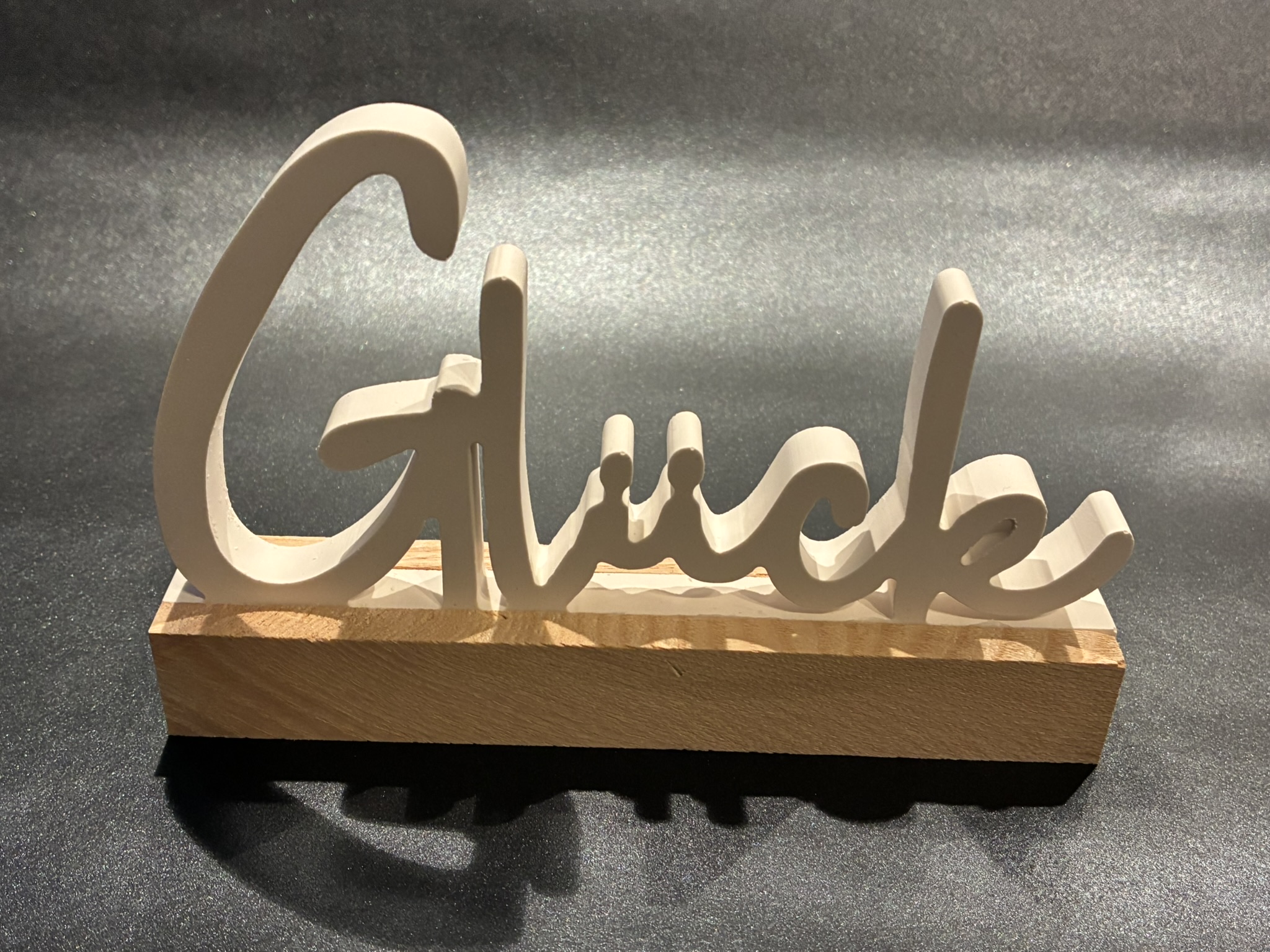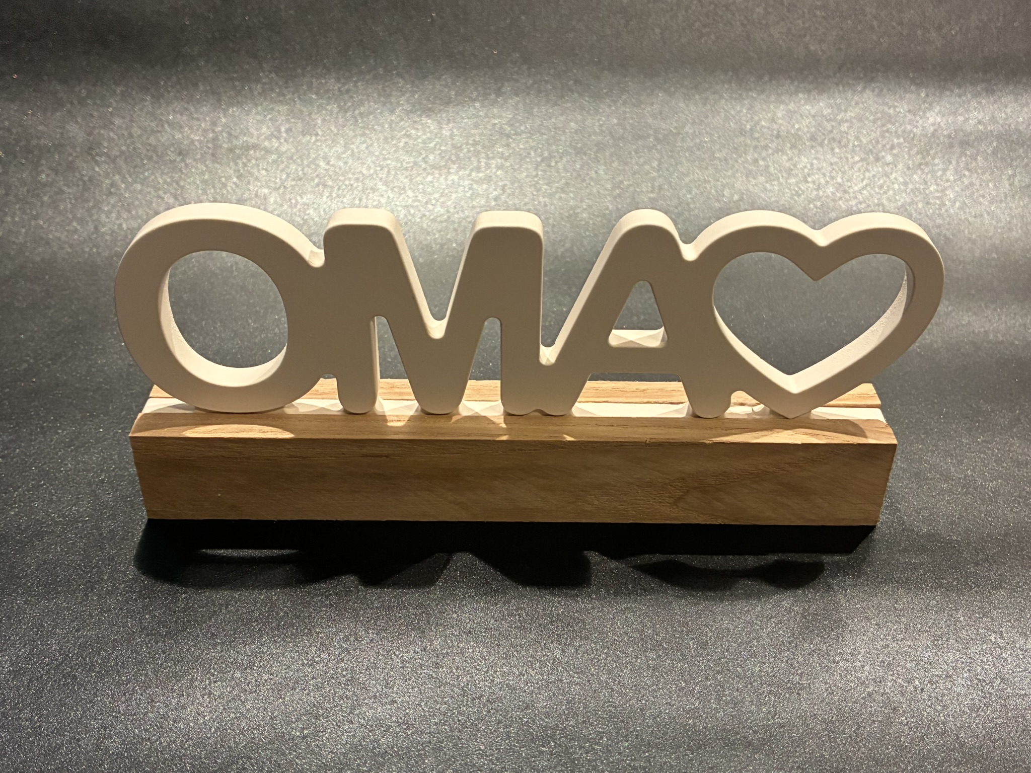 Schriftzüge mit Holzapplikation zum Hinstellen