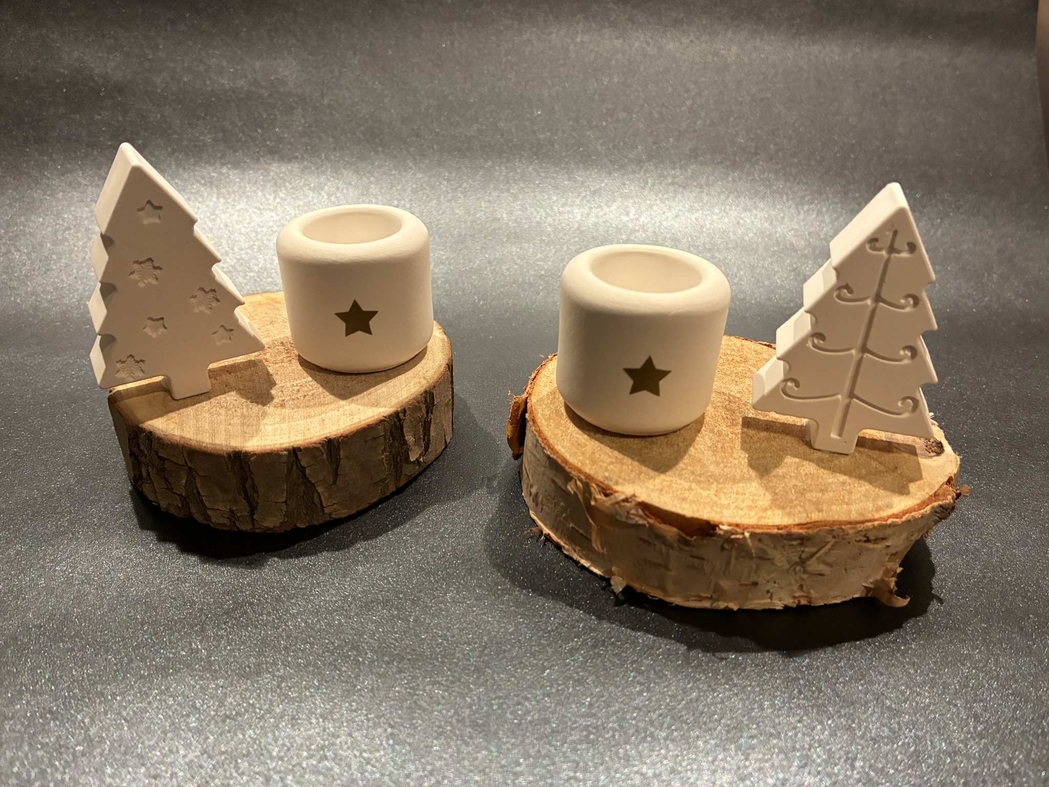 Stabkerzenhalter mit geplottetem Stern und Tannenbaum (verschiedene Ausführungen) auf Baumscheibe