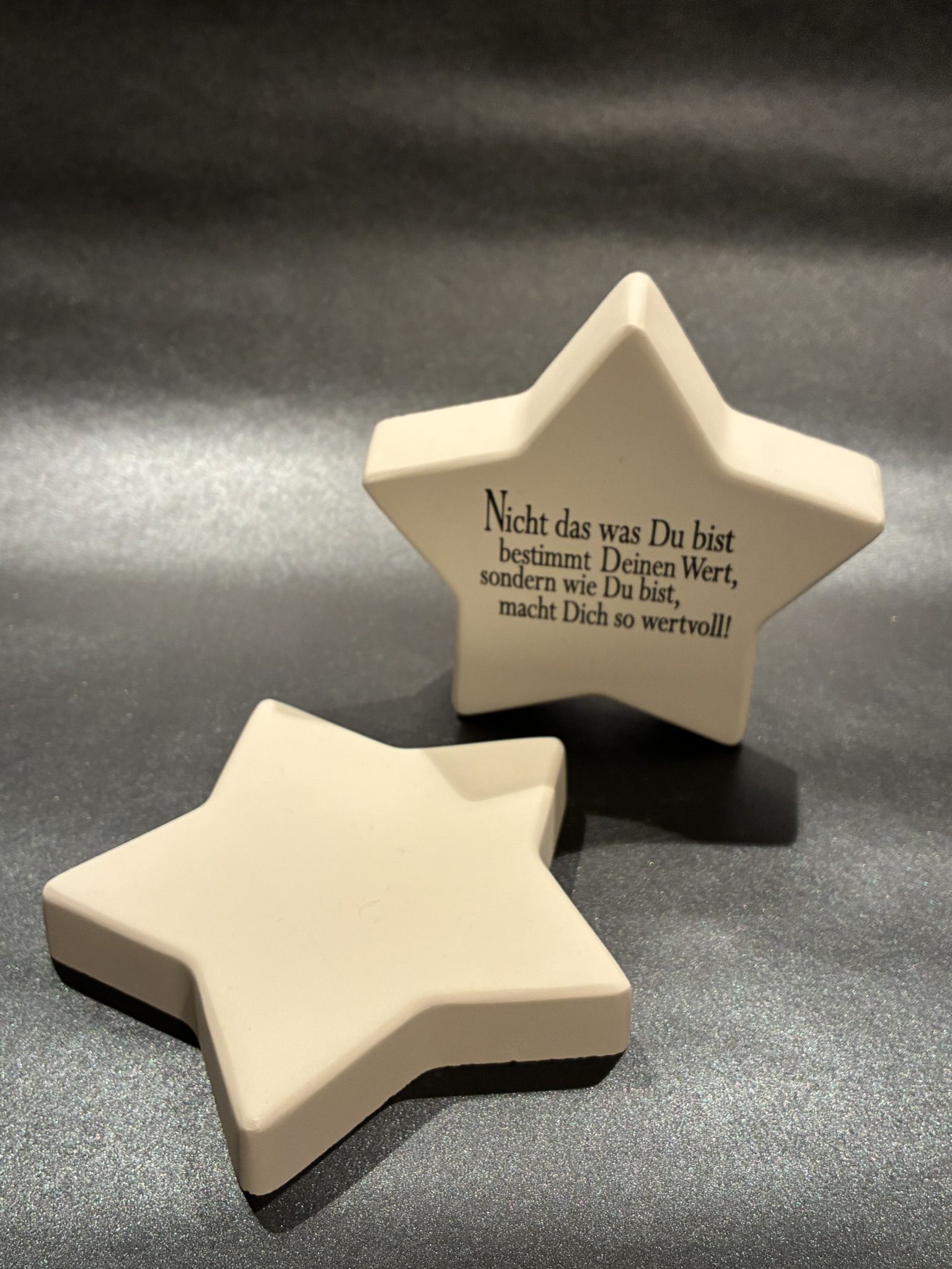 Sterne zum legen oder stellen In verschiedenen Varianten erhältlich. Natur oder bestempelt mit wasserfester Stempelfarbe.